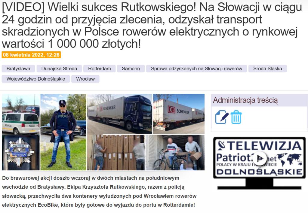 Poniżej link przybliżający działania na terenie Słowacji, zakończone sukcesem i odzyskaniem rowerów o rynkowej wartości prawie miliona złotych.