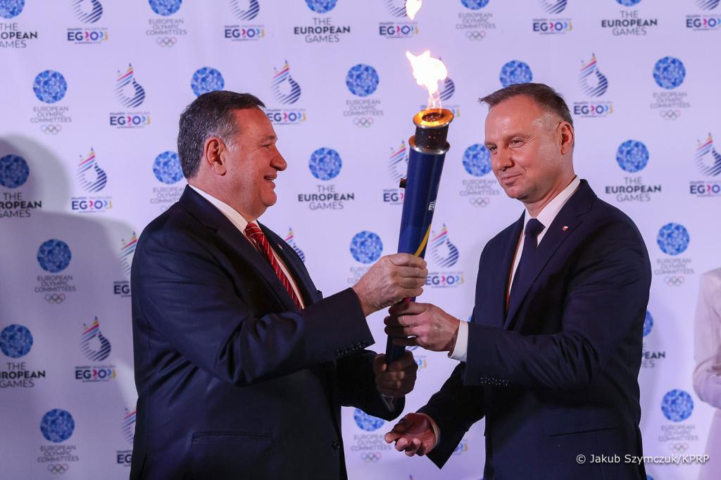 Ogień, od którego 21 czerwca w Krakowie odpalony zostanie znicz Igrzysk Europejskich, przekazał Andrzejowi Dudzie szef Stowarzyszenia Europejskich Komitetów Olimpijskich (EOC) Spyros Capralos.