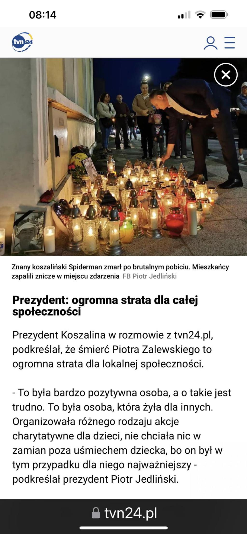 Pasywność działań policji jest szokująca dla rodziców Filipa. Tym bardziej, że w ubiegłym tygodniu zmarł w Koszalinie miejscowy społecznik Piotr Zalewski o pseudonimie „Spiderman”, który również został pobity na ulicy.